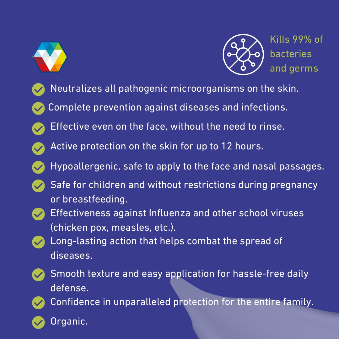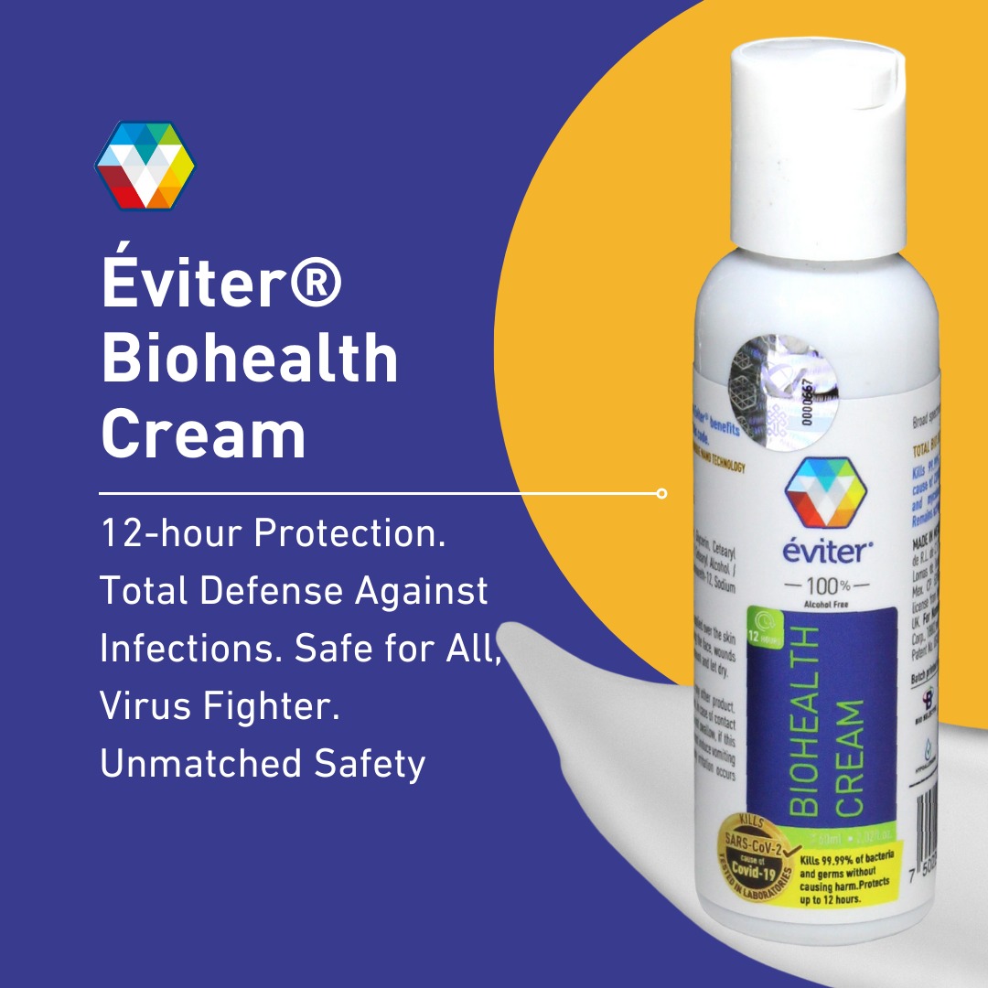 Éviter® Cream is one of the products that make up the first Éviter® Antimicrobial System. Developed to neutralize 99.99% of pathogenic microorganisms and remain active on the skin for up to 12 hours. Free of negative impacts to the user, his surroundings and the environment. It is characterized by its nanomolecule programmed to detect, select and neutralize all types of viruses, bacteria, fungi, spores, trypanosomes and mycobacteria through the disarticulation of its DNA or RNA chain, which, since there is no transfer of genetic information, does not generate resistance. It is recommended for hand washing. It can be used on the face, body and wounds. It has a residuality of 12 hours, it is 100% biodegradable, effective in the presence of protein and blood, stable in the presence of sunlight.