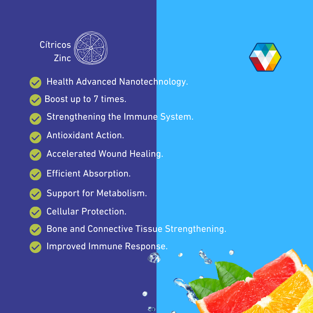 Vitamin C: Due to our patented process of subtraction of citrus (vitamin C) through nanotechnology, the effect of the body’s intake is to radically strengthen its defenses.